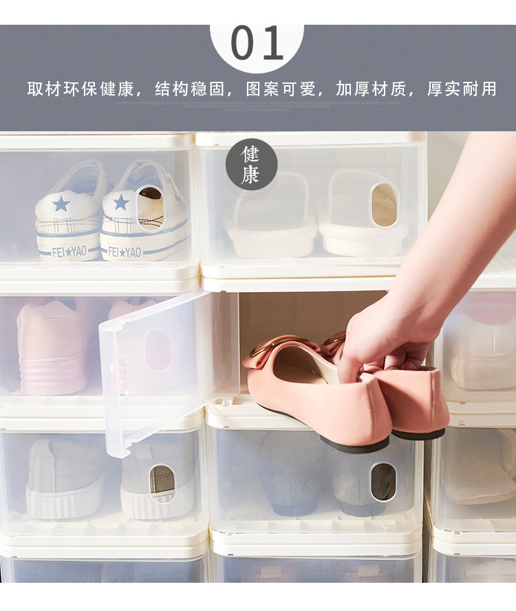 厂家现货批发创意日式塑料鞋盒可叠加防尘加厚鞋盒出口透明收纳盒